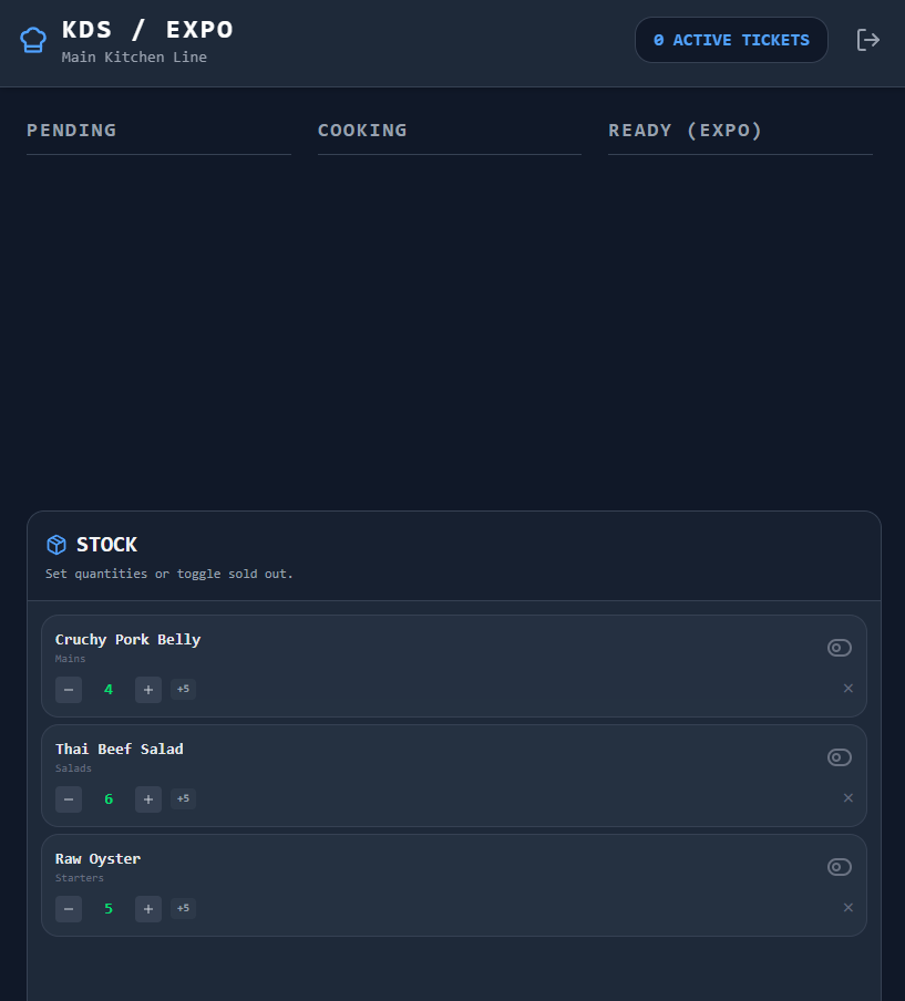 Ran out of an ingredient or drink? The Chef or Bartender simply taps "sold out" on their display, and that menu item instantly disappears from every customer's smartphone in the building.